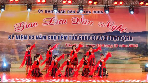 Tối ngày 25/10/2025, tại không gian Chợ đêm Tủa Chùa, học sinh Trường THPT Tủa Chùa đã tham gia chương trình văn nghệ chào mừng kỉ niệm 3 năm thành lập Chợ đêm Tủa Chùa trong không khí tưng bừng, rộn ràng và đậm đà bản sắc dân tộc. Những tiết mục của các em học sinh mang đậm âm hưởng vùng cao, thể hiện niềm tự hào về quê hương, về con người Tủa Chùa giàu truyền thống và khát vọng vươn lên. Mỗi lời ca, điệu múa là một câu chuyện kể về sắc màu văn hóa của mảnh đất “mây trời chạm núi”.